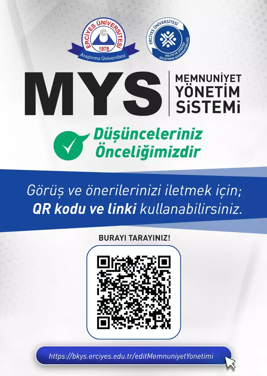 Değerli paydaşlarımız, görüş ve önerileriniz yönetim süreçlerimizi geliştirmemiz ve iyileştirmemiz için değerlidir. Aşağıdaki link aracılığıyla ulaşabileceğiniz MEMNUNİYET YÖNETİM SİSTEMİ BİLDİRİM FORMU ile dilek, istek, memnuniyet, şikayet, fikir ve önerilerinizi bizimle paylaşabilirsiniz.